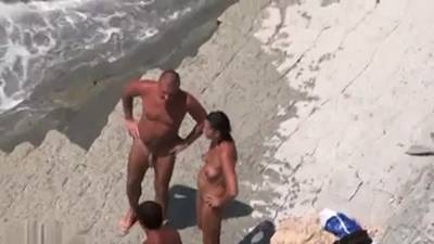 - Planqué dans les rochers en bord de mer, un couple naturiste profite du soleil. Ils ne vont pas rester seuls bien longtemps, car un jeune homme vient faire connaissance. Les libertins ont un 6ème sens aiguisé pour se reconnaître entre eux, car si la discussion est cordiale, la cochonne se retrouve rapidement avec deux bites à vidanger. Son mari la démonte pendant qu'elle pompe l'inconnu, puis ce dernier est également invité à défoncer madame. C'est marrant de voir comme une partie de baise à 3 peut s'engager naturellement... ce qu'ils ne savent pas, par contre, c'est qu'un voyeur caché dans les hauteurs a filmé l'intégralité de la scène.