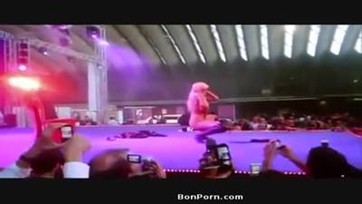- Nous nous trouvons au salon érotique de Nice, Erotica Dream, et une star du porno débute son show sur l'estrade. La foule est très excitée car elle démarre totalement nue. Après quelques pas de danse, elle s'approche du bord de la piste et se laisse littéralement peloter le corps par les spectateurs, un homme mûr en profite beaucoup et s'attarde un long moment sur ses petits seins huilés. Le show continue et elle écarte les cuisses en grand devant la foule qui matte et filme tout ce qu'ils peuvent voir ! Bientôt les vidéos de 2010... A suivre !