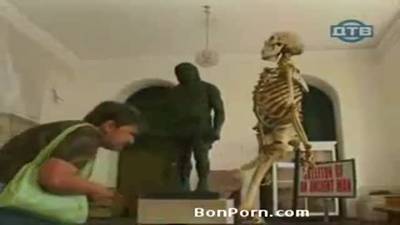 - Une blague dans un musée où un squelette se met à bander au passage des femmes.