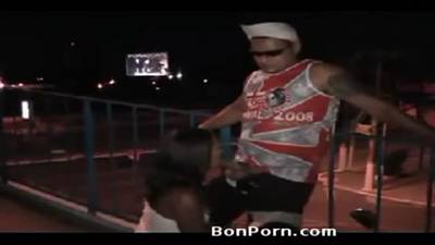 - Deux latino se sont chopés une fille totalement saoule dans une boite et lui ont proposé de la ramener. Au moment de retourner à la voiture, ils passent sur un pont surplombant l'entrée de la discothèque et le plus costau des mecs demandent à la salope de lui tailler une pipe. Elle est tellement défoncée qu'elle accepte et lui suce sa grosse queue en pleine rue. Pour lui mettre la cadence, la latino lui tient la tête et lui enfourne sa tige au fond de la gorge, on se croirait dans un film porno mais c'est du réel !! La nana a envie de vomir alors elle fait une pause mais le mec a pas fini et a envie de jouir donc elle doit reprendre sa fellation en pleine air. Finalement, voyant que la salope y prend goût, il la retourne en levrette sur le pont et l'appuyant sur la rembarde, la baise par derrière. C'est trop excitant de voir les fêtards en contre bas qui attendent pour entrer quand lui se tire une chaudasse bourée alors il jouit rapidos sur ses fesses.