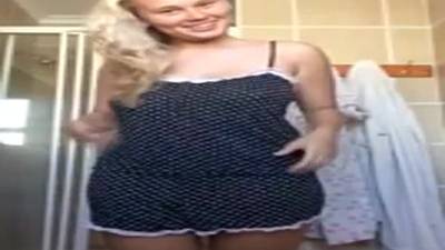 Une blonde a forte poitrine se déshabille