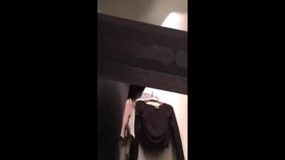- Et voilà une nouvelle petite vidéo volée filmée dans une cabine d'essayage d'un magasin de vêtements pour femme. Mais cette fois on a de la chance car la nana filmée en contre plongée avec une belle poitrine bien généreuse...