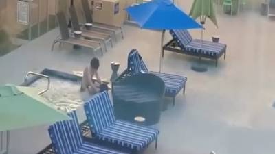 - Dans cet hôtel de luxe, un jeune couple fait l'amour tranquillement dans la piscine. Apparemment l'endroit est fermé peut-être à cause du mauvais temps, mais ils n'en ont rien à faire. Il faut que la propriétaire débarque pour les dégager sinon ils auraient continué tranquillement en plein jour.