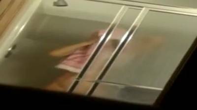 - C'est à travers les parois vitrées de la douche que cette femme se fait filmer à son insu. Pourtant elle est contente de se laver et de se préparer à sortir, mais le mec qui est derrière la caméra est bien heureux aussi car à mon avis il est en train de se tripoter en la regardant.
