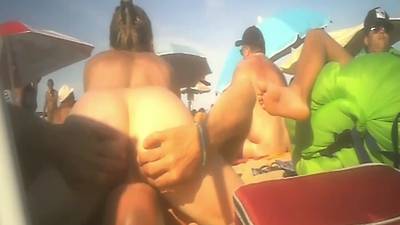 - Sur cette plage naturiste bondée pendant les vacances de l'été, un couple libertin s'en donne à cur joie. Après avoir fait une fellation à son mari en position 69, la femme le chevauche et lui fait l'amour comme une folle. Autour, les mecs les regardent et certains en profitent pour se masturber.