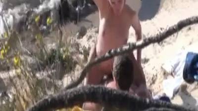 - L'air des vacances invite à la farniente au bord de la plage... mais pourquoi pas non plus au câlins au grand air ? Ce jeune couple s'est trouvé un petit coin de sable, les pieds dans l'eau. Naturistes, ils aiment bronzer à poil et s'envoyer en l'air quand il n'y a personne aux alentours. C'est du moins ce que notre duo pensait... car un voyeur les filme en cachette. Il suffit de lui glisser la main entre les cuisses pour que le meuf soit toute excitée. A cheval sur la bite de son homme, elle le chevauche jusqu'à l'orgasme.
