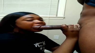 - Cette blackette suce régulièrement des confrères, elle est une habituée des queues de tailles exceptionnelles... mais celle-là : wahou ! Elle nous l'avoue, c'est clairement la plus grosse queue qu'elle ait jamais sucée. Le type n'est pas encore en érection et elle a déjà du mal à avaler la bite entièrement en gorge profonde. En bonne salope, cette pompeuse aux lèvres charnues dévore le chibre. D'une main elle masse les couilles, de l'autre elle branle, tout en poussant le sexe le plus loin possible dans son gosier. Vraiment insatiable cette traînée !