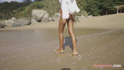 - Putri nous rend une fois de plus accros à son corps, elle se balade sur la plage avec un haut blanc qui fait apparaitre ses beaux nichons. Elle trempe son T-shirt et se caresse avec des roses.