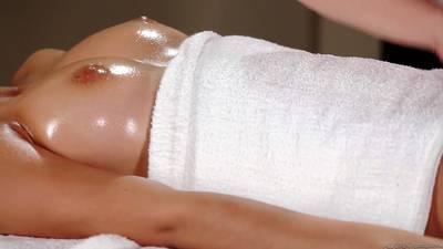 - La masseuse blonde Britney Amber fait un bon boulot. La cliente Megan Salinas va avoir le corps tout huilé et la chatte toute mouillée.