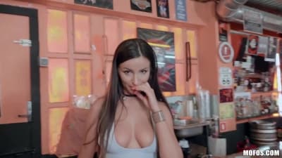 - Le mec convainc la barmaid Alyssia Kent à baiser avec lui après le taf. La belle salope lui suce la queue et se la prend comme une vraie pupute.