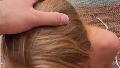 - Un mec perdu va chercher de l'aide à cette jeune blonde pour de l'eau. Elle va faire exprès et verser de l’eau sur le pantalon pour pouvoir y sucer sa bite !