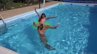- Gina Gerson et Stefanie Moon portent des micro bikinis, se caressent et se lèchent, dans une scène lesbienne au bord de la piscine.
