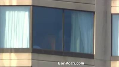 Couple supris par la fenêtre en train de baiser (hôtel)