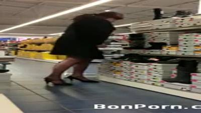 - A priori, le magasin de chaussures est fermé, et le travelo qui doit avoir la clef y rentre sans problème pour se faire plaisir. En talons aiguilles, nu sous son manteau, il se branle la bite puis essaye différentes paires de pompes qui sont sa grande passion.