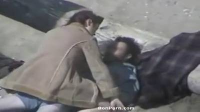 - Un jeune couple est en train de promener leur chien le long de la mer et ils sont pris d'une envie soudaine de baiser à la plage. Pour faire rapide, le couple exhib ne se déshabille pas totalement et la femme écarte juste son string ficelle pour se faire pénétrer par son mec. Les coquins sont allongés sur le sable et cachés derrière une énorme tronc d'arbre amené par la marée et la petite levrette se fera appuyée sur ce dernier. Quand il sent que la sauce monte, sa copine lui branle la queue pour le faire jouir dans le sable. Apparemment, il faisait pas chaud car ils ont des manteaux.